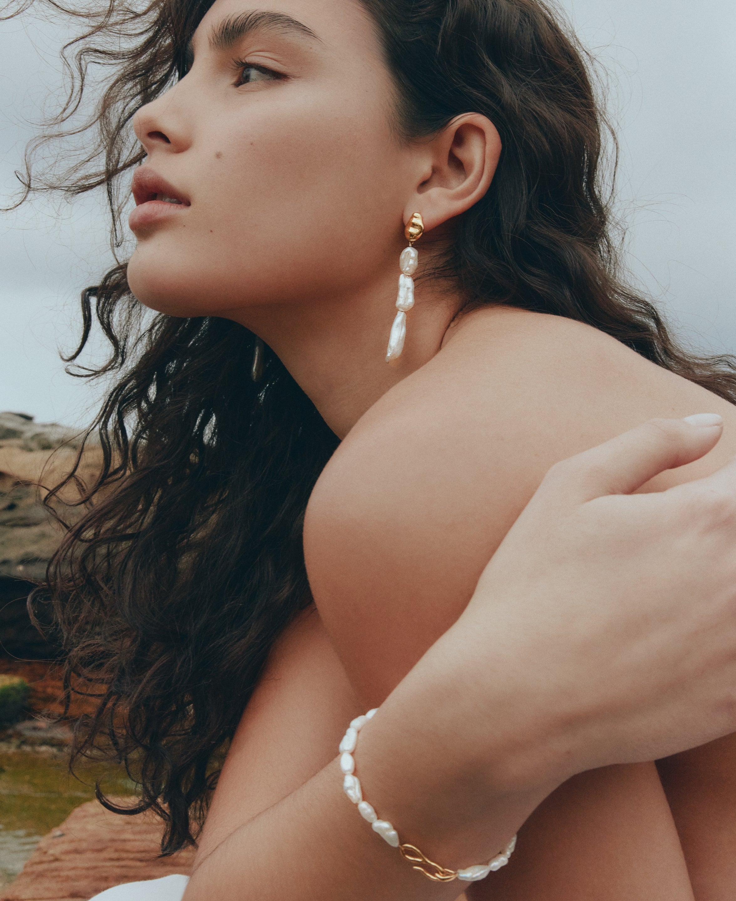 Designed and handcrafted in our Sydney studio from lustrous freshwater Keshi Pearls and sculptural metalwork, the Cielo collection draws from the natural forms of ocean landscapes and drifting clouds.